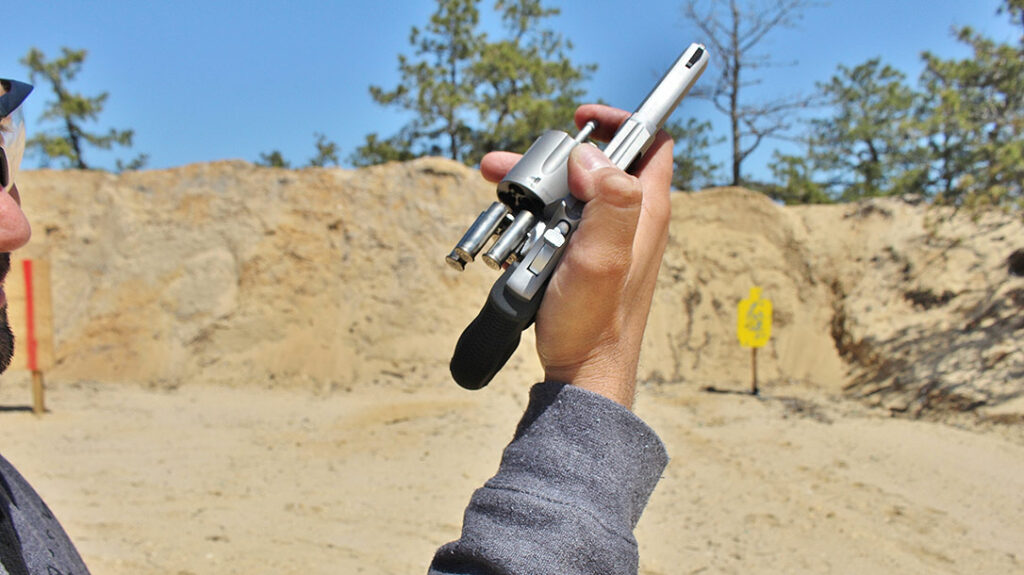 I chose the Doubletap to start with, figuring the hard-cast bullets would be loaded to cowboy-action velocities. But boy, was I wrong. These 180-grain pills hit the dirt with authority and indeed yielded that “.357 Magnum” experience that thrill-seekers look for.