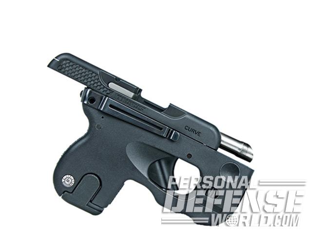 All too often, concealed carriers try to minimize their pistol’s bulk by choosing .22 LR- or .25 ACP-chambered pistols. The Curve is chambered in .380 ACP, the caliber many feel is the minimum for an effective defensive caliber. A concealed-carry handgun should be quick into action, and the Curve is that. Again, there are no snag points with the edges radiused, the design has fluid curves everywhere (a small portion of the muzzle is swept back to match the curves) and there are no sights on the slide.
