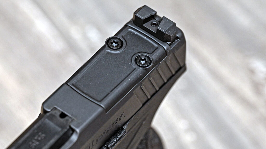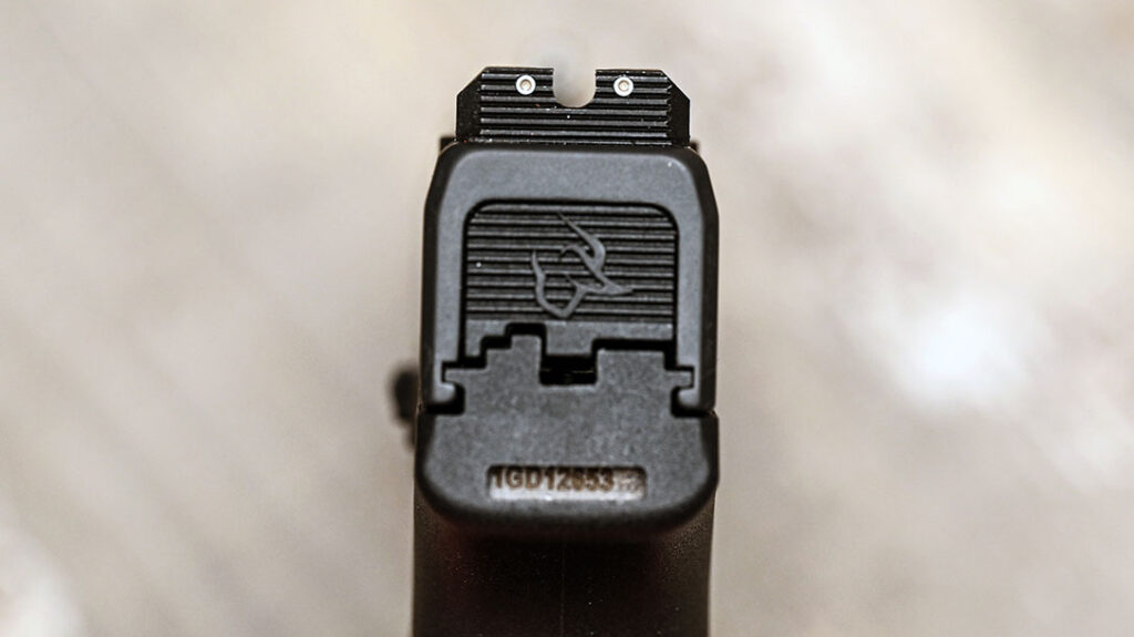 The slide is the same as the one on the GX4 XL, with a set of industry-standard steel iron sights. The sight channel has been cut to accept sights from Glock pistols. So, if you want to change them out, there are plenty of options already on the market. I actually added a set of Precision Carry sights from Continuous Precision to my gun.