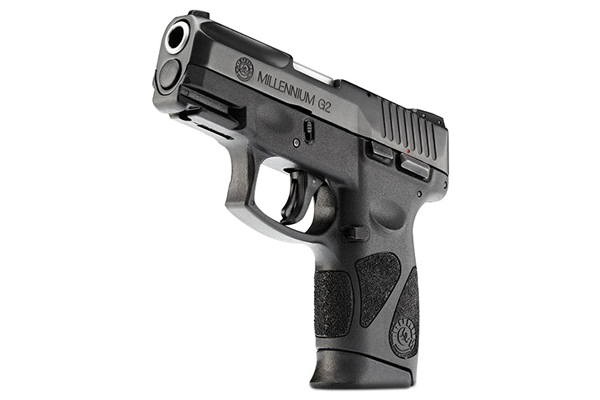 The Taurus Millennium G2 is a polymer-framed handgun with a 3.2″ handgun. It is available in black and stainless steel. The G2 has a loaded chamber indicator, frame mounted safety, an aggressive texture pattern on the grip, and a reversible magazine release. The Millennium G2 also weighs .22 oz and has an adjustable rear sight. It is available in two models, the PT 111 and PT 140. The PT 111 is chambered in 9mm and the PT 140 is chambered in .40 caliber.