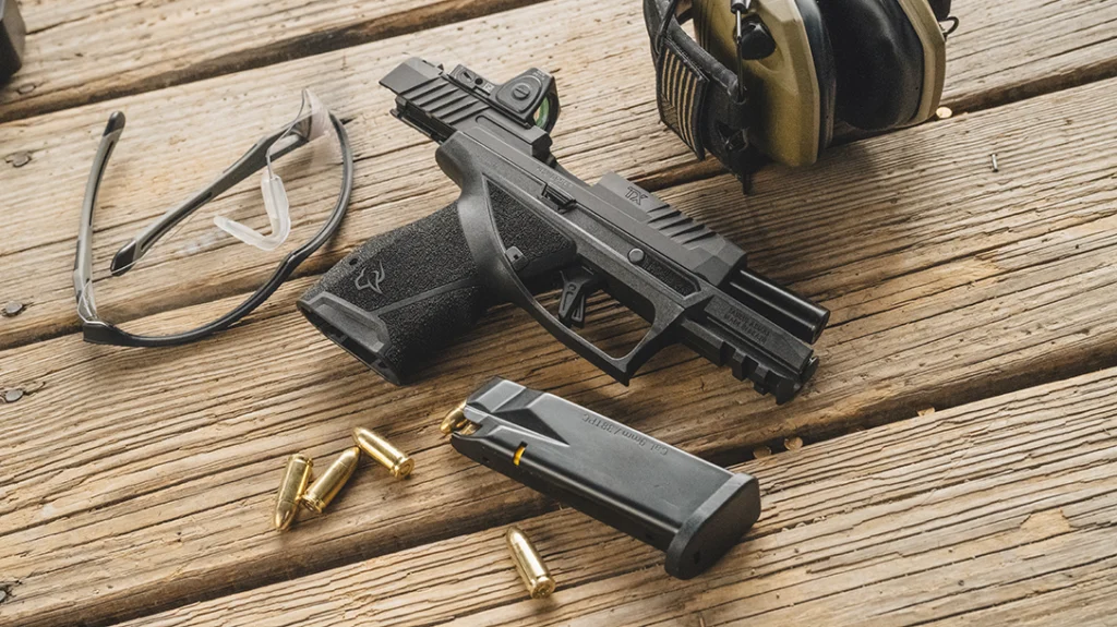 - TX 9 Subcompact — Purpose-built for off-duty or concealed carry, the Subcompact features a 3.4″ barrel and 13-round capacity. It delivers full performance in a discreet, carry-optimized package while maintaining optics-ready capability and consistent controls, allowing shooters to downsize without sacrificing familiarity or confidence.