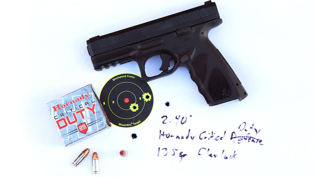 | Hornady Critical Duty 135 gr | 1047.4 fps | 2.74 | 2.40 |