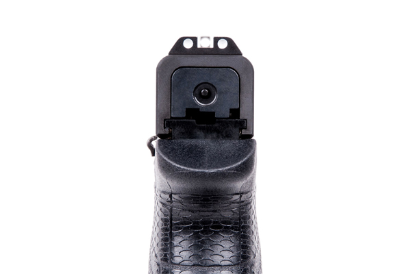 New for 2014 is Diamondback’s DB FS Nine, a full-sized 9mm pistol packing a ton of features at a reasonable price. Extensive research into striker-fired pistols has yielded a nice blend of some of the best design features available. The grip is contoured with a “beavertail,” keeping things solid and preventing slide bite, especially for those with large hands. The trigger is smooth with a positive reset. Fixed three-dot sights provide for quick target acquisition. Cocking serrations at the front and rear facilitate reloads and positive control, no matter the conditions. A full Picatinny rail allows for use of lights and other accessories.