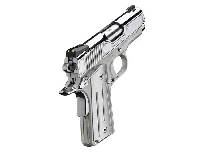 The Diamond Ultra II represents Kimber’s latest addition to its Special Edition gem-tone line of 1911s. It boasts a mirror-polished slide and small parts, an ambidextrous thumb safety, tritium night sights and aluminum ball-milled grips. It also features delicately engraved scroll accents and Special Edition markings on the slide. MSRP is $1652.