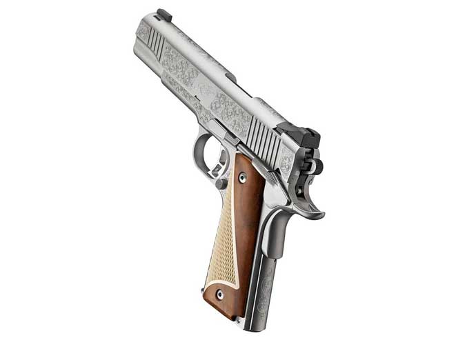 True to its name, the Stainless™ II (Classic Engraved Edition) is accented by vine and leaf full coverage engraving with stipple relief on the frame and slide. Meanwhile, the mainspring housing is engraved to match. This pistol — which has the timeless silhouette of a full-sized 1911 — includes high-grade walnut grips with Ivory Micarta checkered inlay. MSRP is $1905.