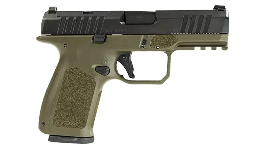 The RM1C is Rost Martin’s introductory flagship pistol. It is a feature-rich compact striker-fired 9mm, first announced in January last year at SHOT Show 2024. The OD green color variant features the frame in classic olive drab, contrasting with the rugged black slide of the RM1C platform.