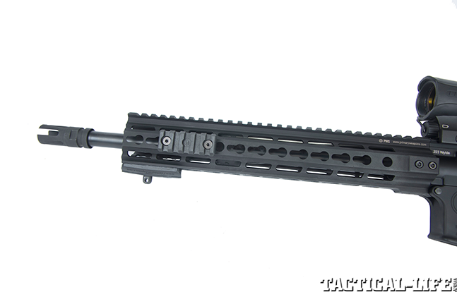 5. PWS adds its effective Triad 556 flash suppressor, which reduces muzzle flash and provides muzzle control for faster LEO follow-up shots.