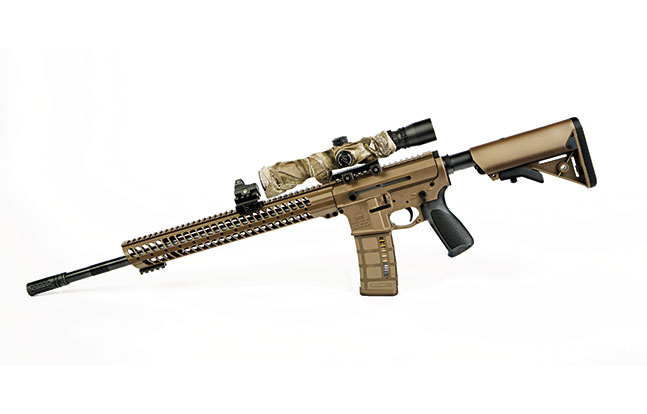 Armalite is the original creator of the AR, and the M-15A4 in 6.8 SPC is built with a mid-length handguard and gas system. The double-lapped, chrome-lined barrel, optimized for 110- and 115-grain bullets, has a 1-in-11-inch twist rate. (armalite.com; 800-336-0184)