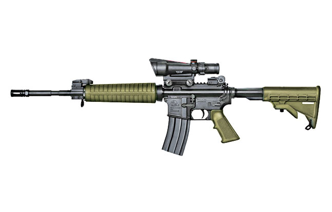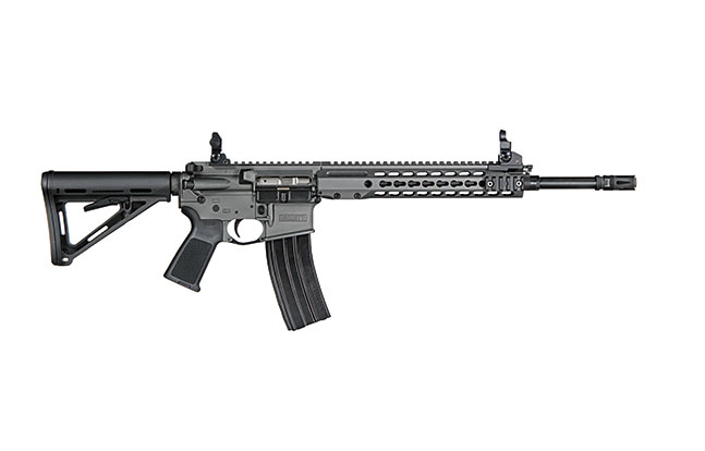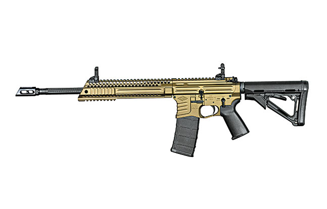 The flattop Model 5 from Stag Arms comes optics-ready for mounting scopes or sights. The thermoplastic handguard and AR-style pistol grip are similar to an M4’s. The barrel for the Model 5 has a 1-in-11-inch twist rate. Swapping out an upper is an easy deal since Stag Arms uppers are compatible with mil-spec lowers. (stagarms.com; 860-229-9994)