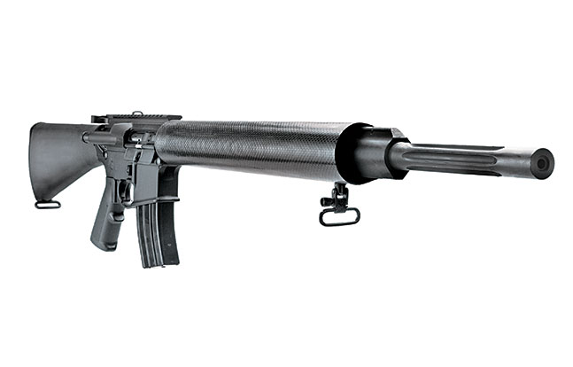 The DSC Supermatch is outfitted with a heavy stainless barrel that is either 20 or 24 inches with a 1-in-8- or 1-in-10-inch twist rate. The heavy barrel is free-floated in a DSC rifle-length handguard, and a rifle-length gas tube keeps this 6.8 SPC rifle running and producing sub-MOA groups. (star15.com)