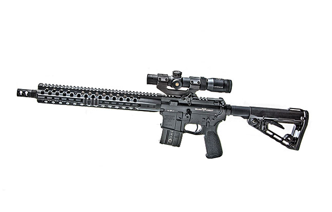 The Recon SR Tactical features forged 7075-T6 upper and lower receivers. The barrel is a 14.7-inch, medium-weight, stainless steel, match-grade unit with M4 feed ramps. The muzzle sports either a permanently mounted Rapid Threat attachment or a permanently attached Accu-Tac flash suppressor for a total barrel length of 16.1 inches. Surrounding the mid-length gas system and low-profile gas block is Wilson Combat’s TRIM rail. (wilsoncombat.com; 800-955-4856)