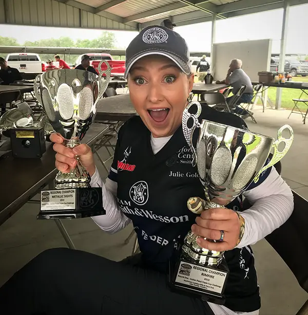 “It wasn’t just about the shooting—it was the people,” Julie explains. “I had a front-row seat to legends like Rob Leatham and Jerry Miculek. I was inspired by women like Sheila Brey and Kay Miculek. They made me believe I could do this too.”