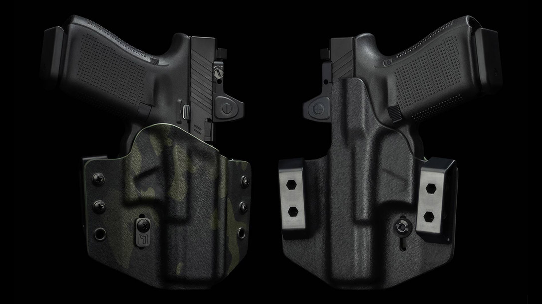 The holster’s design and contouring provide the concealability of an IWB holster with the comfort of an OWB holster. Likewise, the belt loops will fit any belt from 1.5 to 2 inches and are adjustable for ride height and cant. It is currently available in both right- and left-handed options.