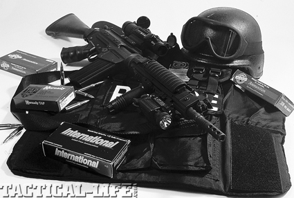 Tools of the trade: SA58 Rail Interface carbine, SWAT gear and test ammo from various manufacturers.