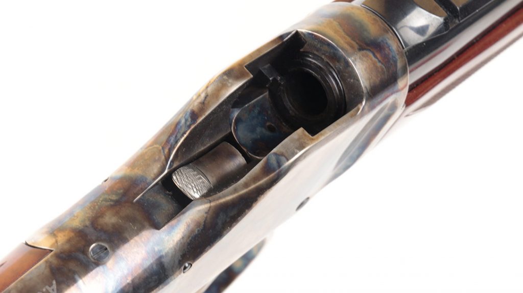 I did run into a problem when I moved to the bench to test the rifle’s accuracy. After shooting a couple of good groups, suddenly my shots were all over the target. My scope rings were tight, but I discovered the base that came on the gun had loosened. I thought a couple drops of Loctite on the screws would remedy the situation, but I found I couldn’t tighten two of the four screws that held the base. They’d spin, but not hold. I’ve never had problems with any Uberti firearms in the past. I’m sure they’ll solve the one issue with this gun.