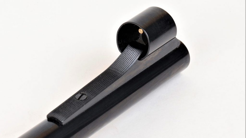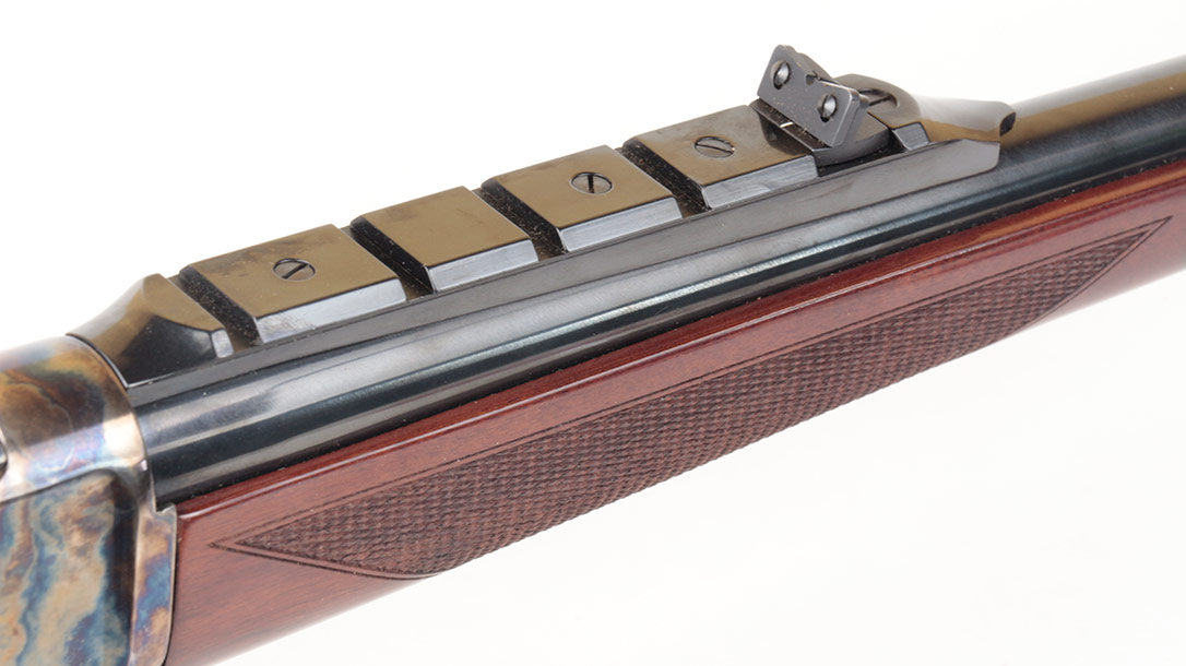 The Prince of Wales buttstock has the distinct rounded grip. African heartwood caps the tapered forend. The barrel has a nice bluing, and the receiver has a deep color case-hardened finish that is very well done. There’s a quarter-rib optics rail with integral shallow “V” adjustable rear sight. The ramp front sight with brass bead features a hood. Topping off the classic look is the barrel-mounted sling swivel stud.