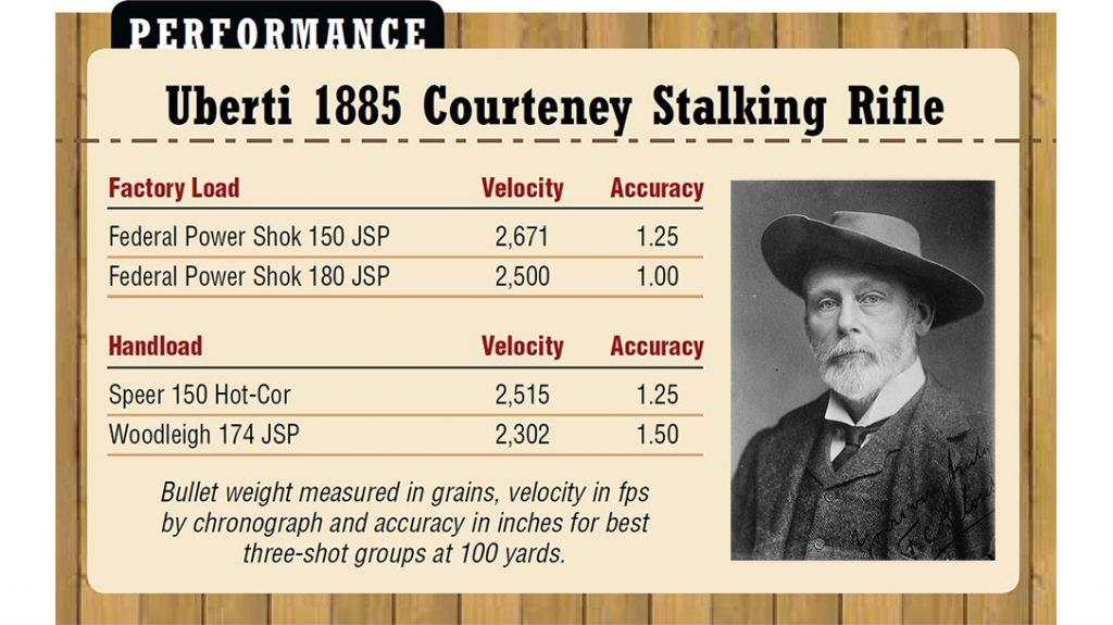 There are plenty of firearms out there with fine accuracy and game-taking ability. You get that with the Uberti 1885 Courteney Stalking rifle. And the .303 British is a mild-shooting cartridge that’s fine for medium-size game.