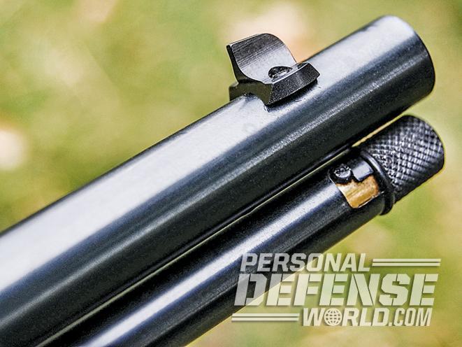 Uberti recreated three of the most popular Yellowboy models, so it made perfect sense to build a scaled-down version with some appropriate modifications to a rimfire model. The loading assembly incorporates a cartridge-control mechanism that allows controlled round feeding so that the gun can be fired reliably while held at any angle.
