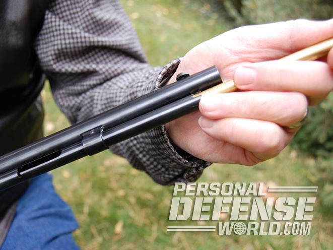 Studying the rifle in my hands, I couldn’t help but reflect on the patchwork of firearms history that led to the creation of this new rifle. Uberti’s Silverboy borrows its name from Winchester’s Model 1866 Yellowboy lever-action rifle. The 1866 Yellowboy was a marked improvement over the company’s earlier Henry rifle. It was the first true cowboy lever-action rifle, and the first rifle widely carried in a cowboy-style saddle scabbard. The Yellowboy had a convenient new type of loading gate, devised by Winchester plant superintendent Nelson King. The gate passed cartridges through the side of the receiver. This improvement made the lever action more functional and allowed for the installation of a wooden forend. In some regards, the new Silverboy’s loading process harkens back to the earlier Henry. They both load from the magazine tube toward the muzzle end. Whereas a Henry shooter had to depress the follower spring to facilitate loading, the Silverboy wears a spring-loaded tube that is extracted toward the muzzle like many other tube-fed .22 rimfire repeaters.