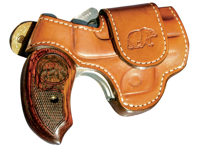 Bond’s Papa, Big and Brown Bears ship chambered for .45 LC with 3-inch barrels and a weight of 22 ounces. All three wear extended grips but the first two wear black rubber with a bear emblem. Big Bears have matte-black frames. Grips for Brown Bears are custom rosewood with bear emblems.