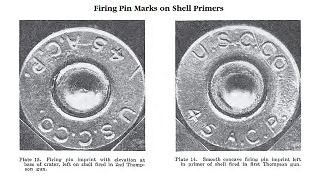 Goddard test fired the guns taken from Burke’s home in order to compare them to the bullets and spent cartridges recovered from the scene of the massacre. Using a microscope to examine the rifling marks on the bullets, the firing pin indentations on the primers, and markings on the cartridge from the extractors, Goddard was able to confirm that the Thompson submachine guns found in Burke’s closet were indeed the ones used on February 14, 1929.