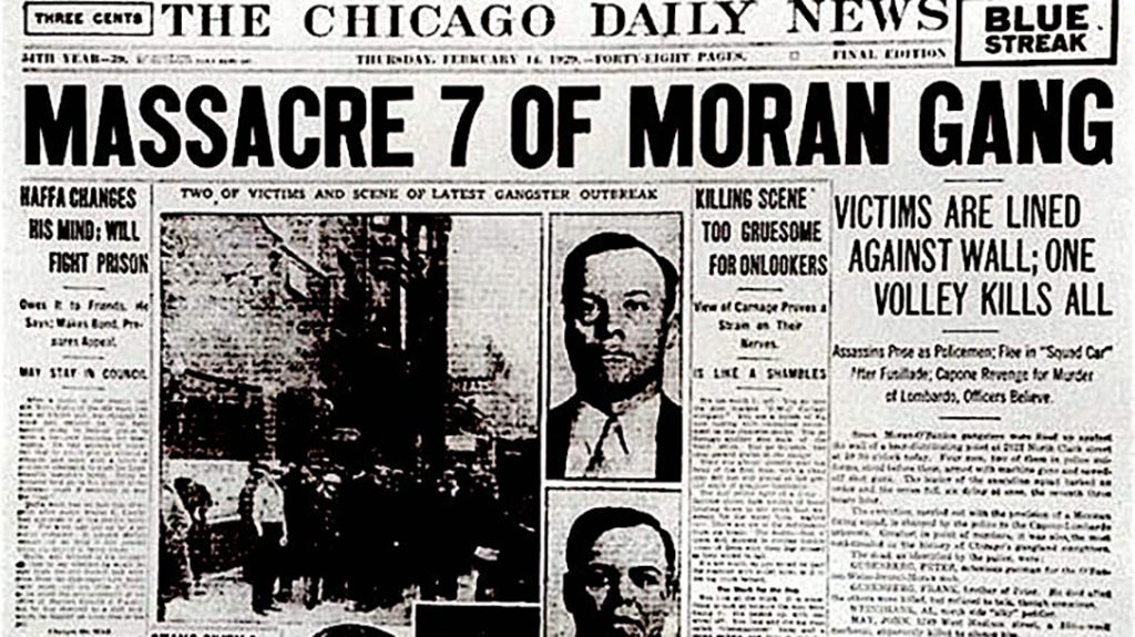 On February 14, 1929, a group of men from the South Side Gang were gathered in a garage owned by George “Bugs” Moran. The men were unloading a shipment of liquor when they were surprised by a group of local police. The officers ordered the men to line up against a brick wall, presumably to be searched, cuffed, stuffed into a car, and whisked away to the local police station for booking. Or, if they were lucky, these officers would be on the take and could easily be dispatched with some cash and, perhaps, a case of the illegal hooch.