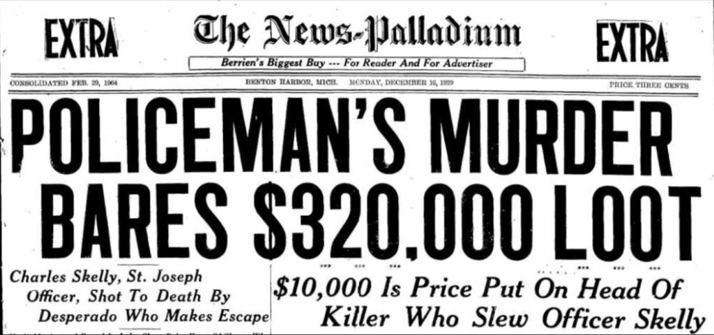 On the evening of December 14, 1929, Fred Burke was headed to the local train station in St. Joseph, Michigan, to pick up his wife, Viola Dane. While en route, he was involved in a fender-bender with Mr. Forrest Kool. Upon exiting their cars to examine the damage, Kool could smell alcohol on Burke, who said he’d compensate Kool for the necessary repairs. Burke produced a wallet full of large bills – far larger than the repairs would cost – so Kool agreed to follow him into town where one of the bills could be broken.