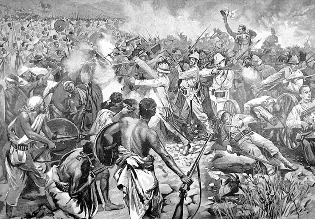 As Italian units crumbled, survivors fled the battlefield in disarray, abandoning all their artillery and equipment, including 11,000 Model 1870/87 Vetterli-Vitali rifles. Fearsome Omoro cavalry wearing their lion headdresses pursued them for nine miles. The morning of the battle, Emperor Melenik II, knowing that prisoners would be valuable leverage in post-war negotiations, is said to have instructed the Omoro to, “bring me the men, not the testicles.” However, collecting the scrotum of the enemy as a war trophy was an old Ethiopian military tradition.