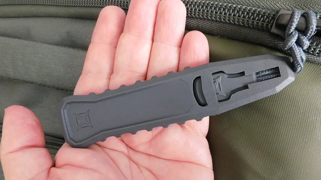 A floating internal divider allows a two-inch expansion of the concealed carry compartment. The Vertx Rapid Access Tab optimizes deployment speed even further. The Rapid Access Tab is a large, flexible polymer handle attached to the zipper. The ridged edges provide a firm grip and it fills the hand perfectly. You know exactly where it is without even looking. With minimal practice, I learned to rotate the pack to my front using the Rapid Access Tab while simultaneously unzipping the concealed carry compartment. The pack positions itself perfectly for me to draw my firearm. Well done, Vertx.