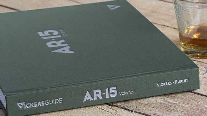 Vickers Guide: AR-15 Volume 1 is 352 pages and approximately 13″ wide by 11″ tall. It features a commercial quality, section sewn style binding, full color prints on premium quality photo paper stock, a foil stamped, (Olive Drab) Green linen cover, a full color protective dust jacket and a ribbon page marker.