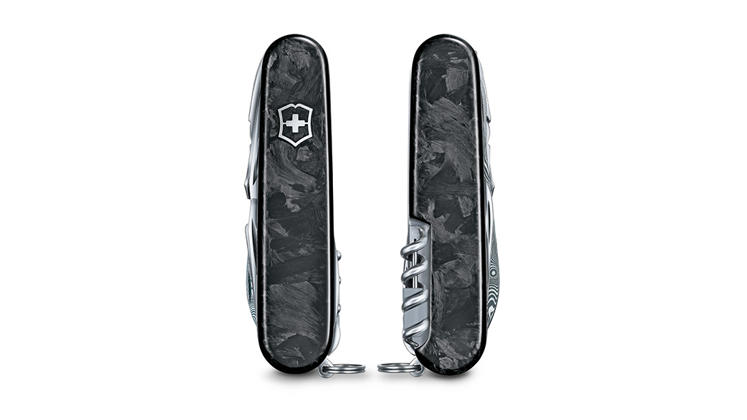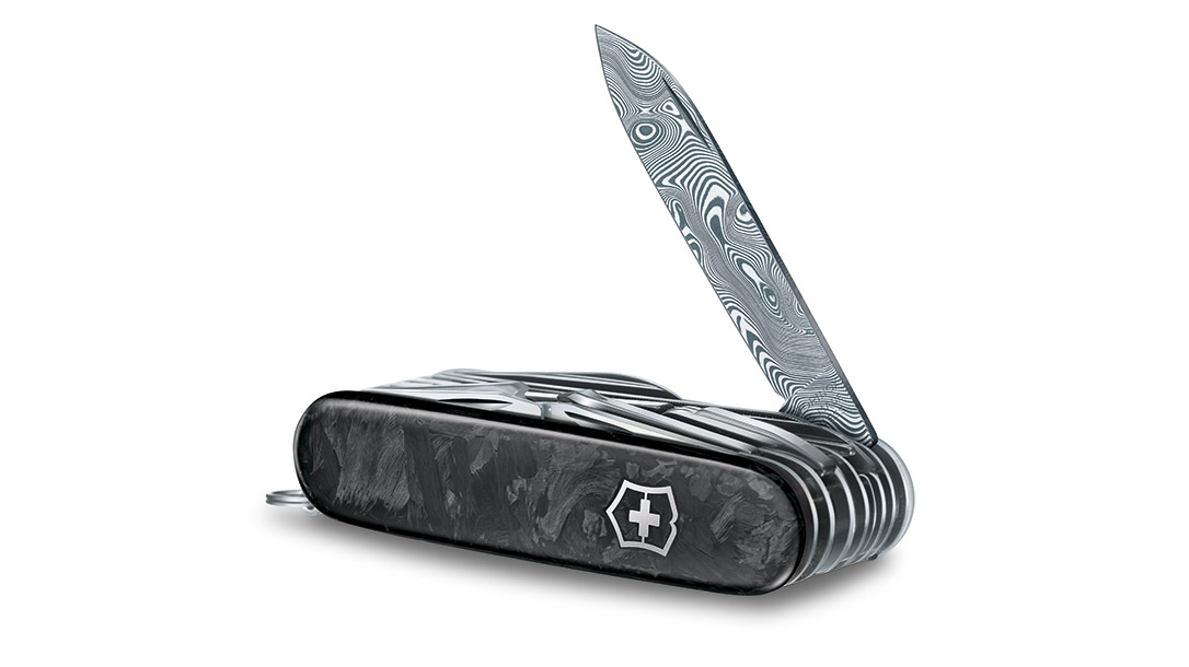 Handcrafted in Switzerland, the Swiss Champ Damast is exclusive for 2021. Only 6,000 are available, worldwide. The Damast steel on the main blade features the “Bjorkman’s Twist” pattern. The Damast steel construction of the main blade ensures that every knife is one of a kind.