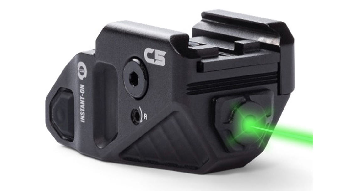 The diminutive C5 utilizes Viridian’s green laser technology for a bright, easy-to-see laser, even in daylight. With a charge time of 90 minutes, the laser will provide 100 minutes of runtime between charges. Likewise, the 1.76-ounce footprint won’t be a drag on your muzzle or affect your aim.