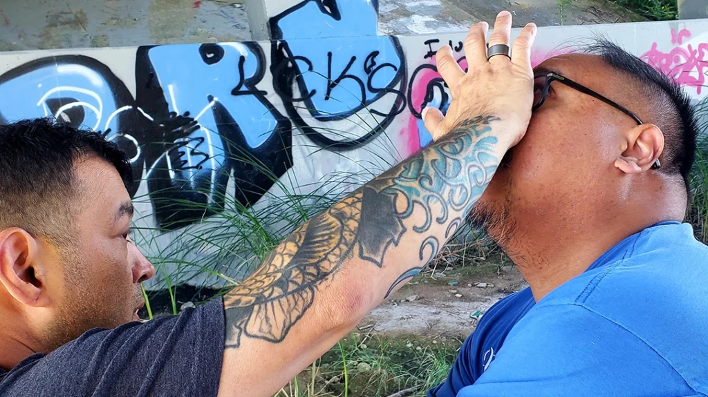 Some may say, “That’s not a pressure point. That’s an eye poke.” I personally don’t see the difference. Make no mistake, I don’t see pressure points as a fight-ender. They are just another tool in my toolbox that can be used when needed.