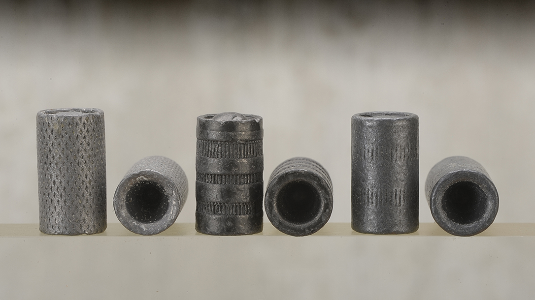 Because the powder charges are small—around 2.7 grains of Bullseye—checking for double charges is a necessity. Occasionally, on cases that have been used before, the inside bottom has been blackened and the charge is hard to see. Employing the use of a small flashlight or penlight is a good idea before finishing the round off with a bullet.