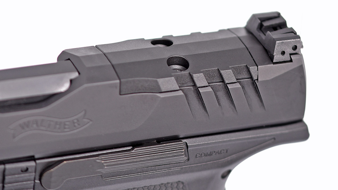 On top of the slide you’ll find a decent, if pretty basic, set of iron sights. The rear sight is adjustable for windage and elevation. The new Walther Compact pistol features a 4-inch barrel. Walther’s unique and innovative stepped chamber is designed to offer better performance and long-term dependability with any ammunition.