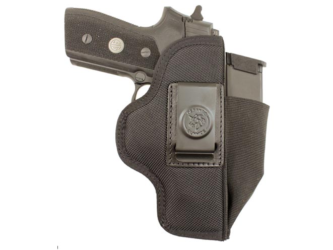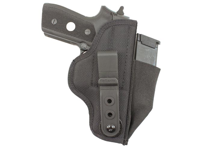 This holster is built from heavily padded 1050D black Ballistic nylon and lined with slick pack cloth. The widely adjustable belt tab can swing from cross draw to FBI-strong side carry. The tab allows the shirt to be tucked down in between the gun and trousers affording nearly total concealment. Accommodates belts up to 1 3/4″ wide. MSRP is $43.99. For more information, visit http://www.desantisholster.com/TUCK-THIS-II