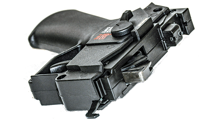 The G36 .22 looks exactly like its identically sized, identically proportioned centerfire counterpart. In hand, it feels a bit more like Walther’s rimfire guns. It’s light. Its construction is primarily polymer, encapsulating the steel components that comprise its dedicated firearm workings. Its sights are polymer, its magazine is polymer and its safety switch is polymer (externally, anyway). But inside, it’s a proper firearm with a steel barrel and bolt, built with a very clever design and beefed up to take plenty of abuse.