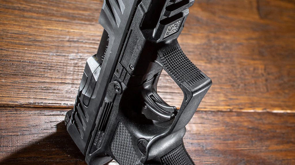 Not only is the grip size nice on the F, but it’s got some of the best stippling in the business. Specifically, the stippling is known as performance duty texture. The grip’s texture is a tetrahedron design, and it’s non-abrasive and won’t rub you the wrong way.