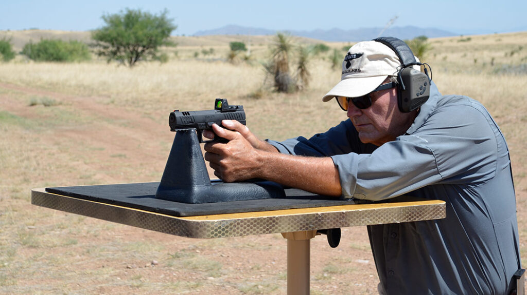 For the accuracy portion of my evaluation, I chose to use a Trijicon RMR with a 3.25-MOA dot. It took just a couple of minutes for me to find the right optics plate, install the battery and attach the sight to the WMP via two screws. I have found that for handgun accuracy, this size dot best meets my needs.