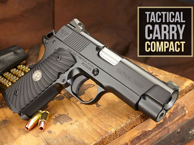 The Tactical Carry Compact has been designed by Bill Wilson as a next generation compact custom pistol and is an ideal choice for an everyday carry piece when maximum concealability is required. The Compact steel frame and slide fitted with our Bullet Proof ® round butt one-piece magwell enhances reloading under stress.