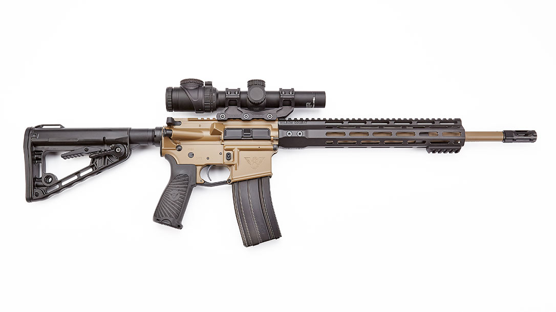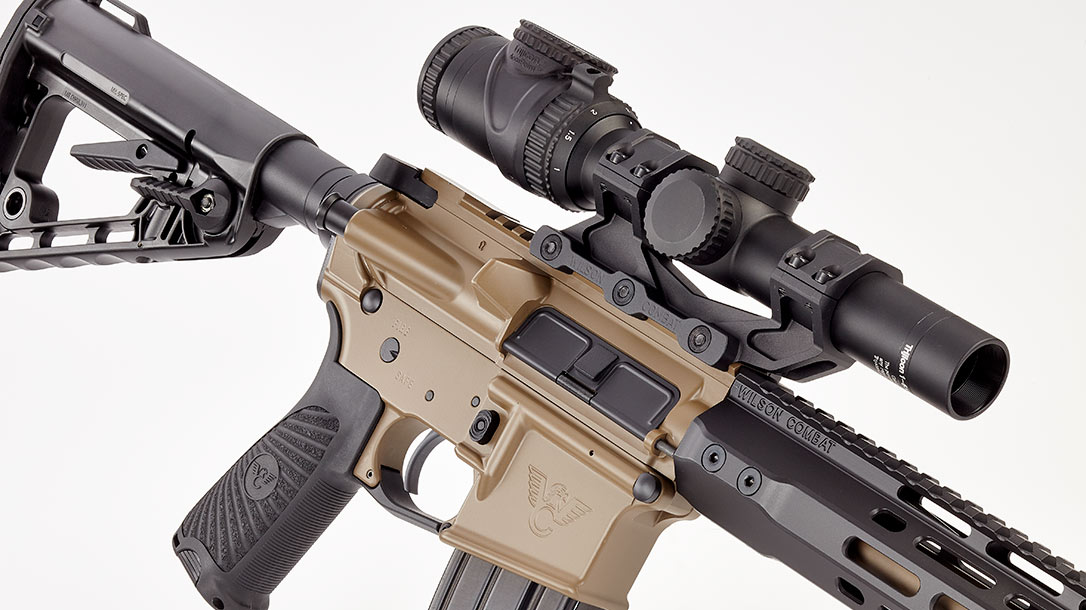I mounted a Meopta 1-6x24mm MeoStar R2 riflescope with an illuminated 4C reticle on the carbine and tested it at 100 yards from sandbags. Wilson Combat’s 110-grain Lehigh Defense Controlled Chaos and 150-grain Hornady SST loads averaged just a bit over 1 MOA for five 5-shot groups, which is definitely better than average for an AR.