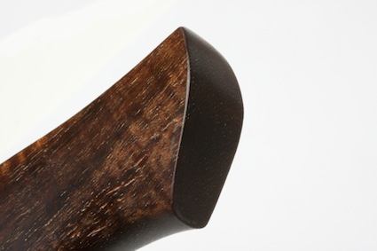 The contoured handle is likewise unique and is masterfully crafted from a block of rare and beautiful Hawaiian stabilized Koa wood. Koa is a tough wood and often exhibits chatoyancy, an optical condition when wood grain exhibits a shimmering three-dimensional character. Hand textured titanium pins add a high-tech, rugged accent.
