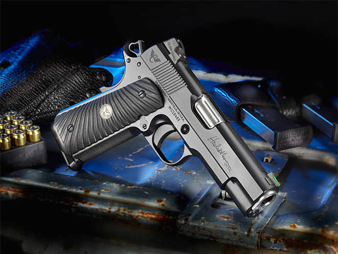 Available in both 9mm and .45 ACP, the Wilson Combat Hackathorn Special Commander also features a 4.25-inch carbon steel slide; black G10 starburst flat bottom grips; countersunk slide stop; rear cocking serrations; 30 LPI high cut checkered frontstrap; heavy machine chamfer on the bottom of the slide; Battlesight rear and fiber optic front sight; fluted chamber; 30 LPI slide top serrations; 40 LPI serrated rear of slide; ball endmill cuts; tactical Bullet Proof thumb safety; and 3 ½ to 4 ½-pound trigger pull.
