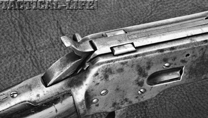 The Winchester 1892 action is slick because of the way that John Browning designed the arm. When the gun’s action is closed, the bolt is directly behind the cartridge in the chamber. Locking blocks on each side of the action secure the bolt to the inner walls of the action. When the shooter strokes the lever down, an internal link pulls the two locking blocks down and out of their mortises in the receiver walls and bolt. At this point, another contact on the lever pulls the bolt backward to it full extent, ejecting the fired cartridge and cocking the hammer.