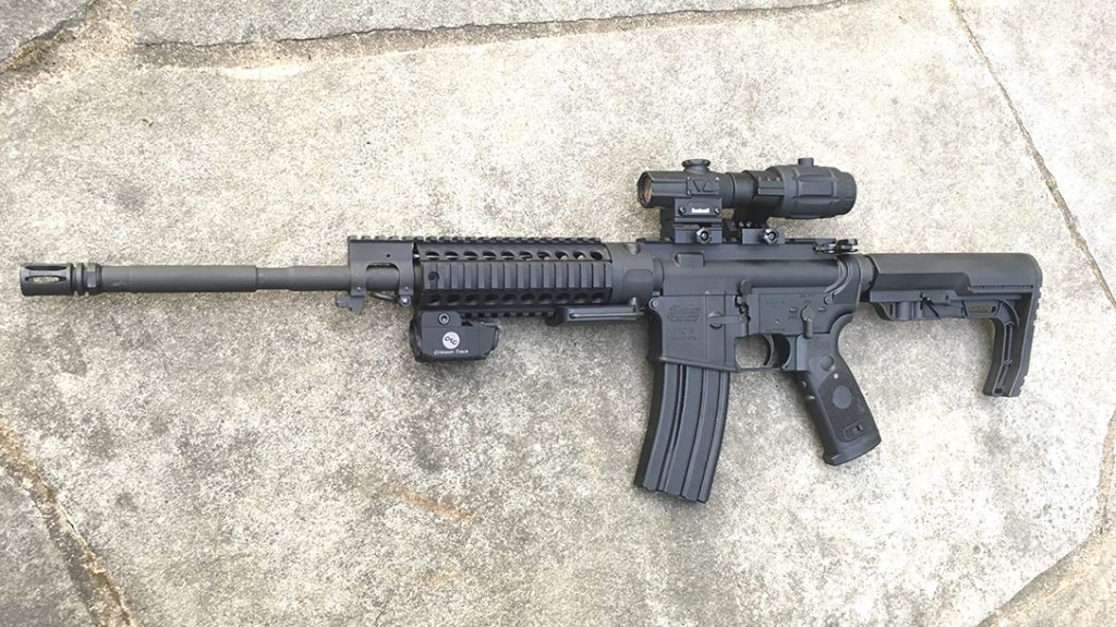 Recognizing that shooters have their own muzzle-device and sight-system preferences, the BOB MCS comes with an A1 or A2 birdcage flash-suppressor and no sights. A survival gun is not a sporting arm. The demands placed on it to live outdoors in all weather and endure rough handling give it more kinship with military arms. Strong iron sights are close to indestructible but relying on them for primary sighting is foolish when there are so many solid optics to choose from that can help compensate for shooter inexperience and the physical limits of your vision.